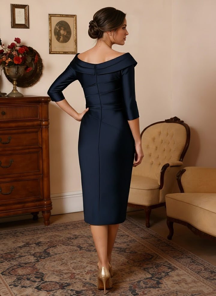 A-Line/Princess Shirt Collar 3/4 Sleeves Printed Flower Mother of the Bride & Groom Dresses