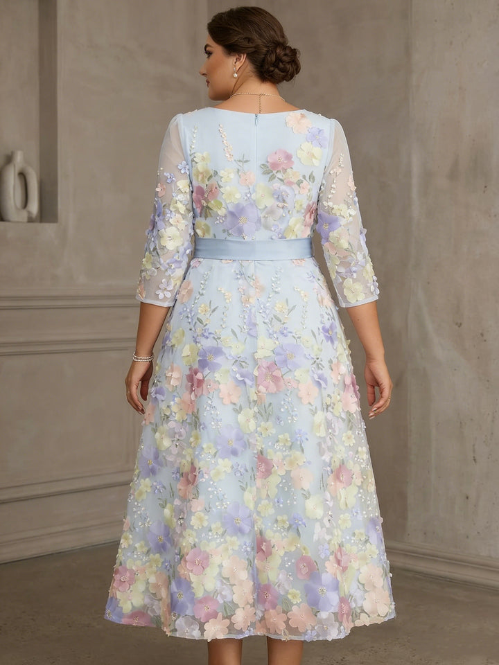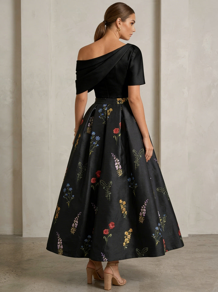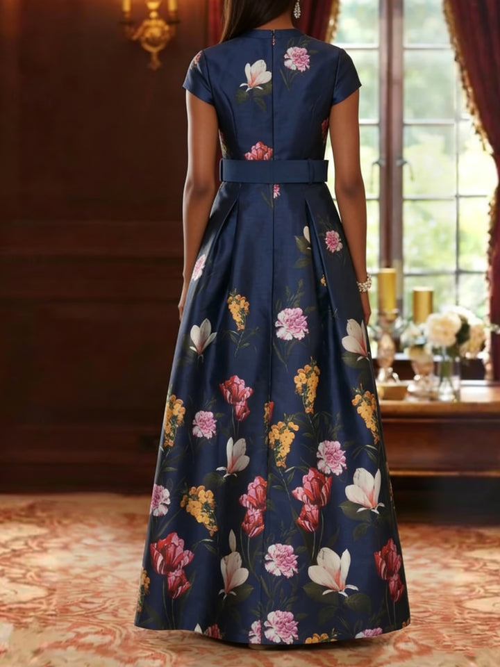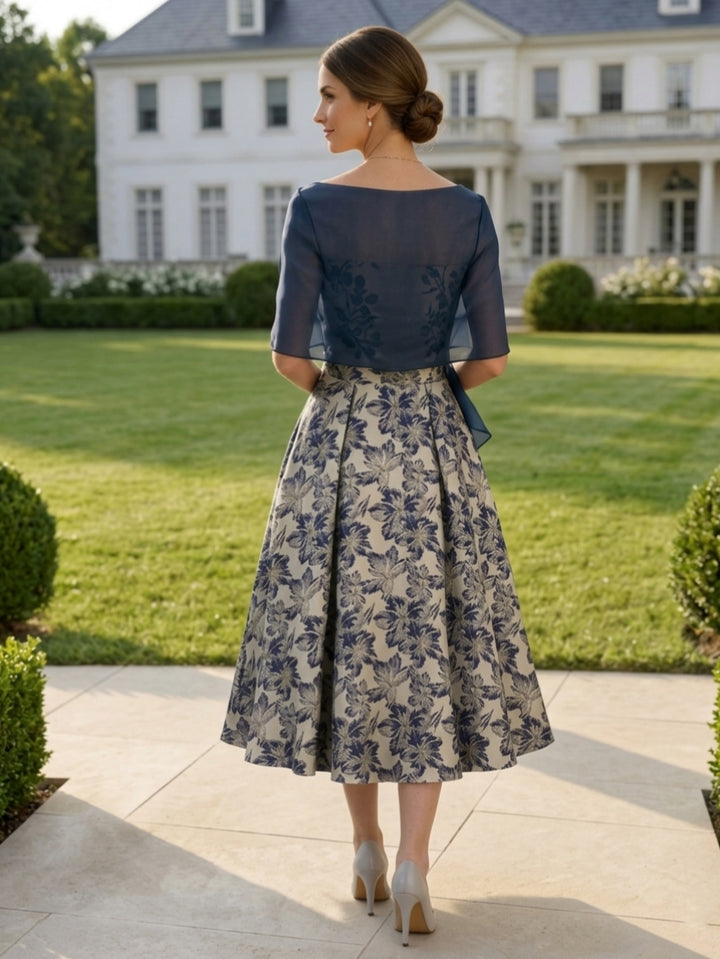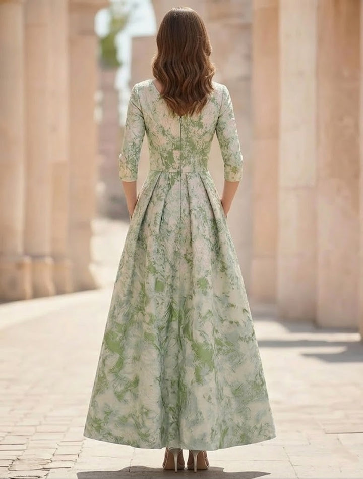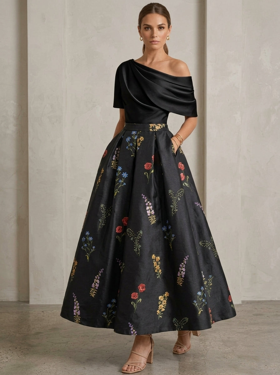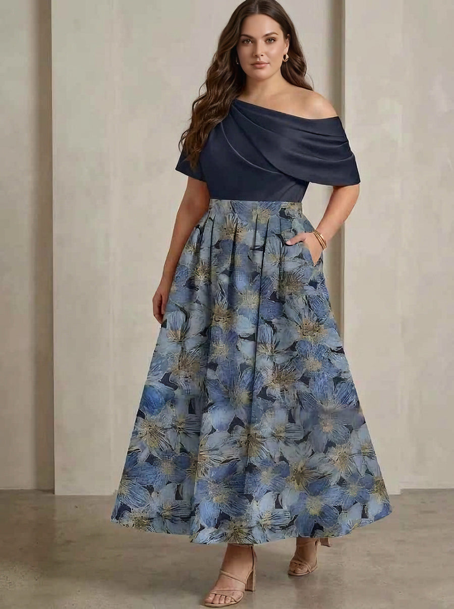 A-Line/Princess Square Collar Satin Mother of the Bride Dresses Floral Ankle-Length Short Sleeves