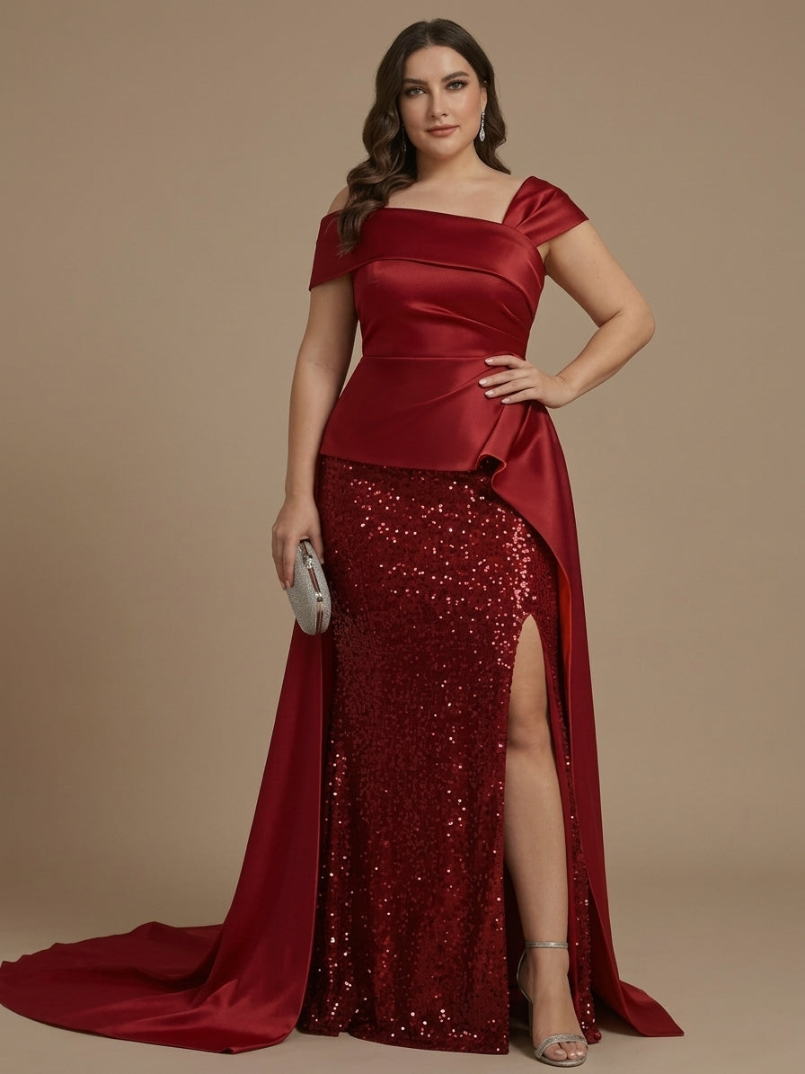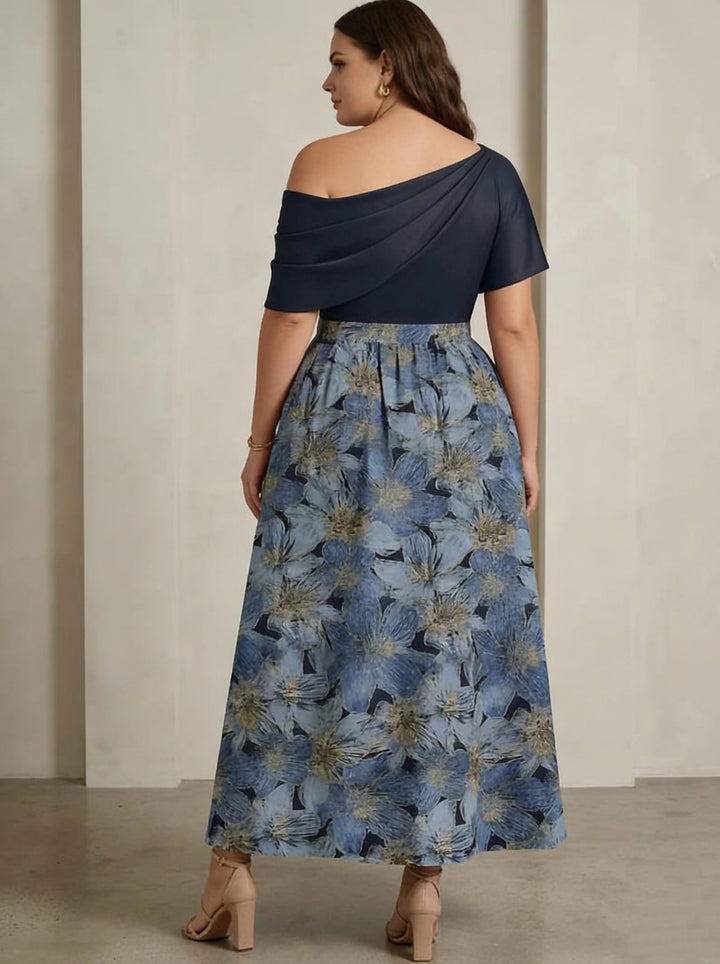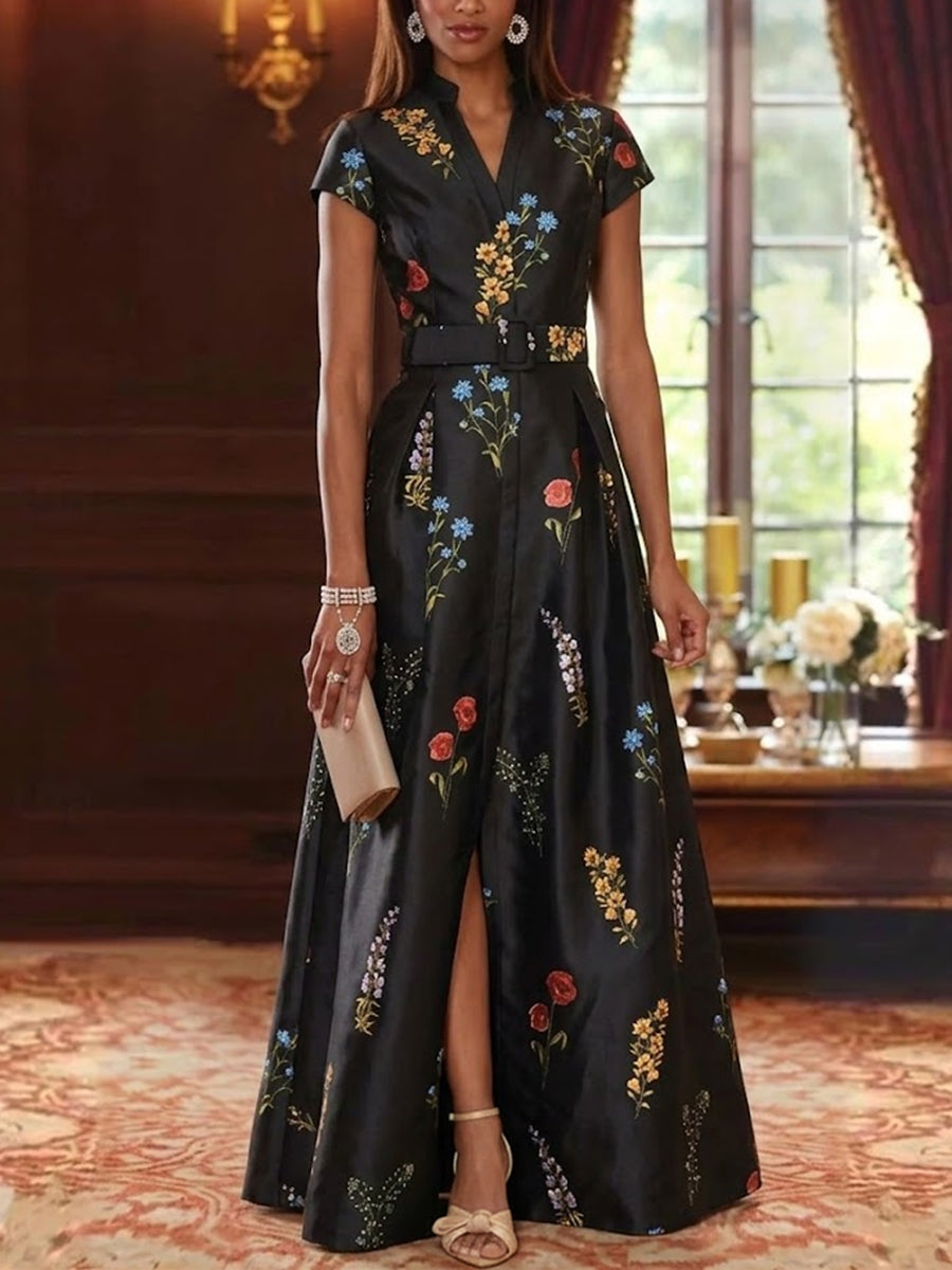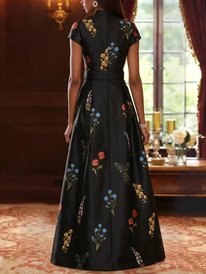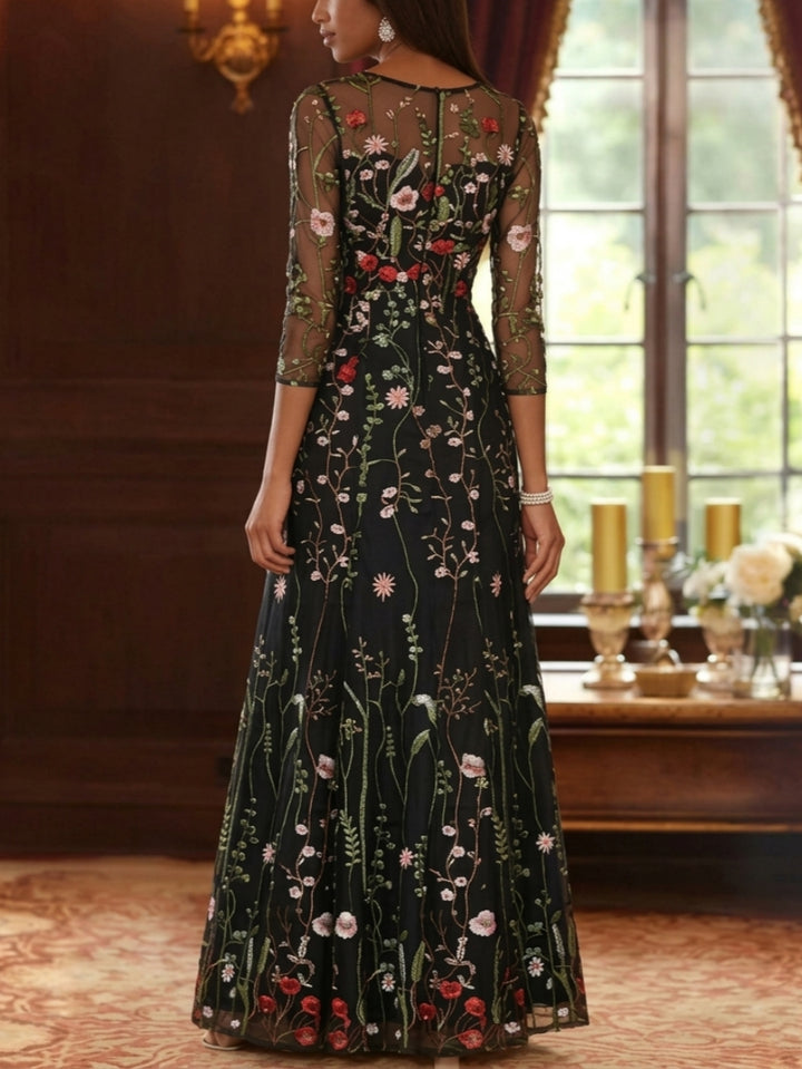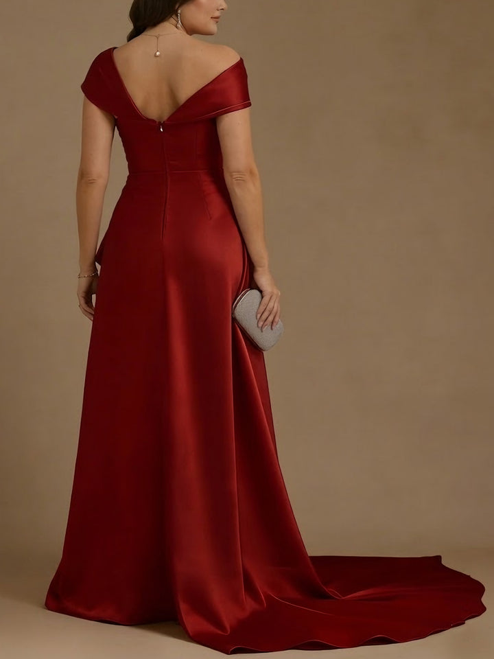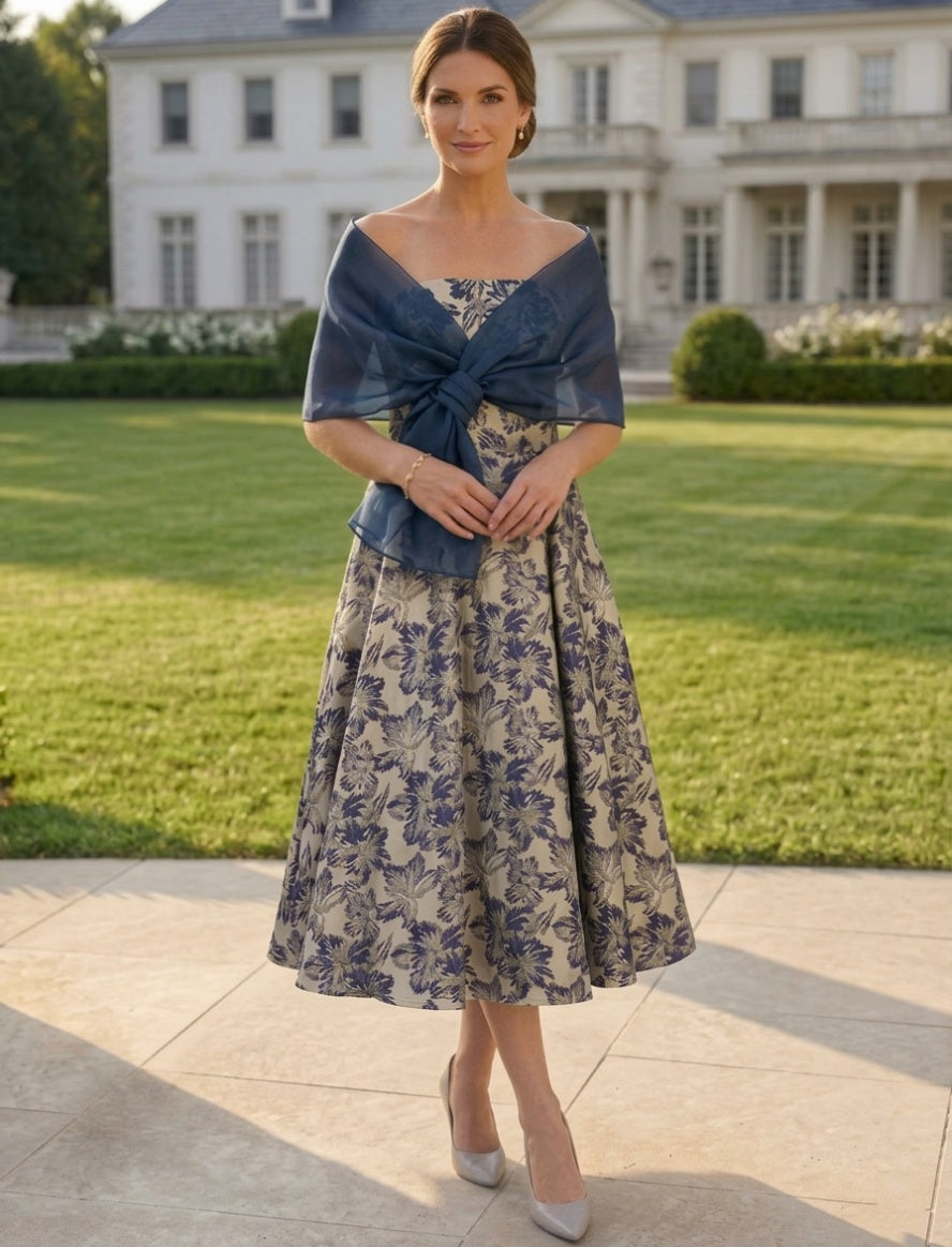 A-Line/Princess Square Collar Satin Mother of the Bride Dresses Floral Ankle-Length Short Sleeves