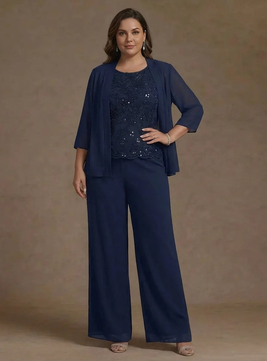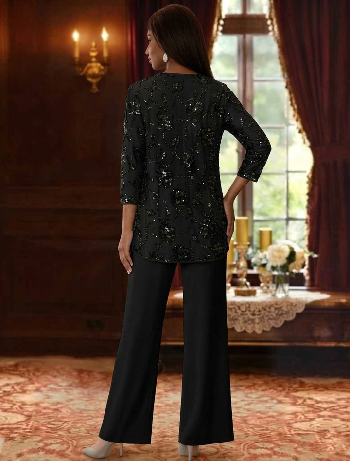 Chiffon Mother of the Bride Pantsuits with Jacket & Sequins