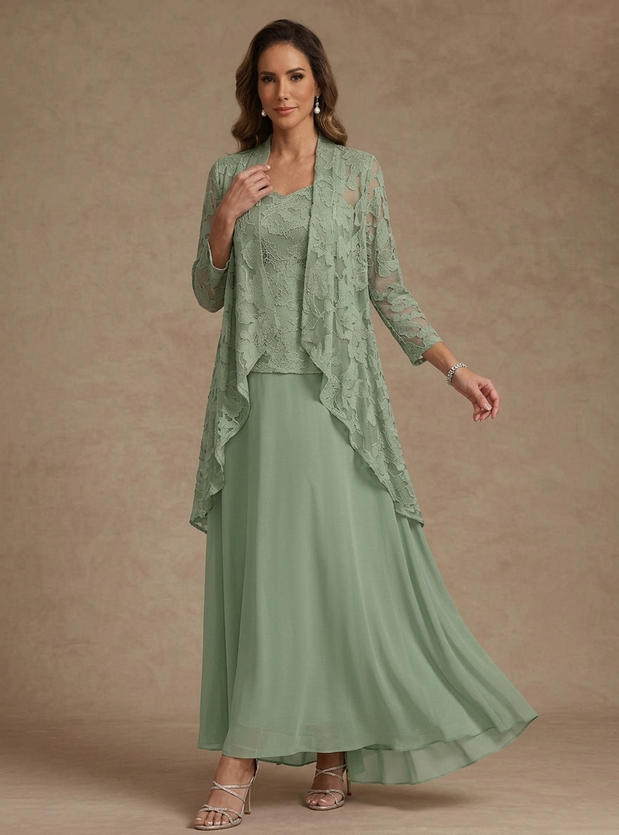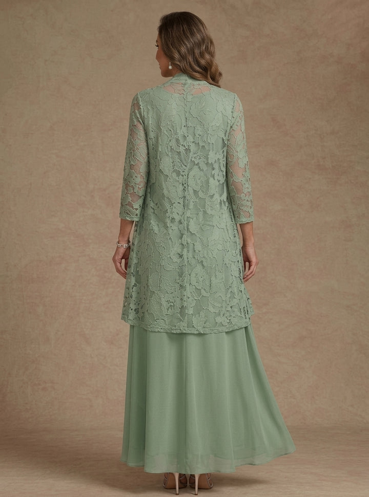 A-Line/Princess 2 Pieces Scoop Lace Mother of the Bride Dresses with Jacket Long Sleeves Ankle-Length