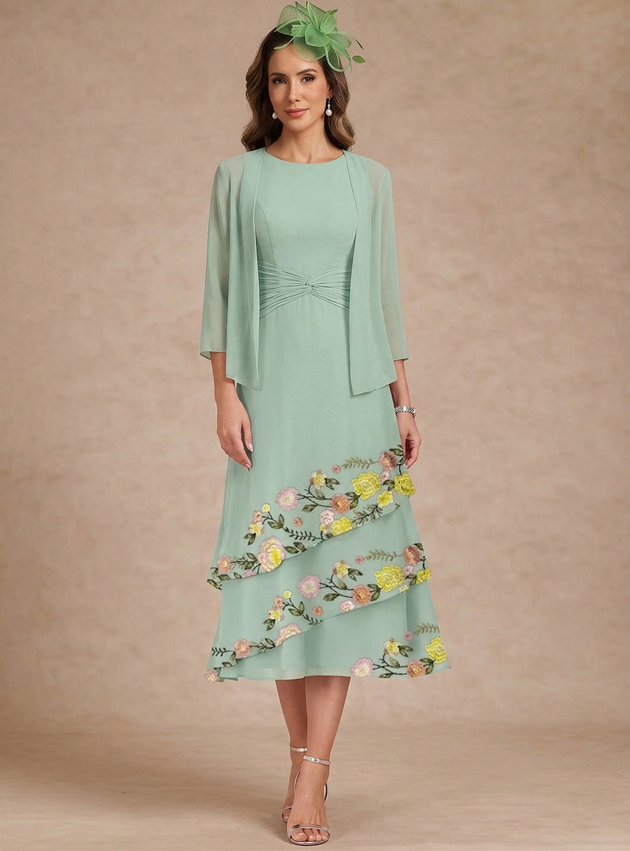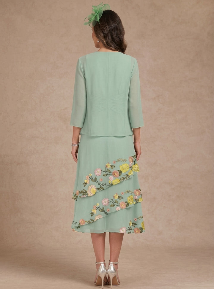 Mondressy‘s Champagne Sheath/Column Chiffon Mother of the Bride Dress with Jacket Image