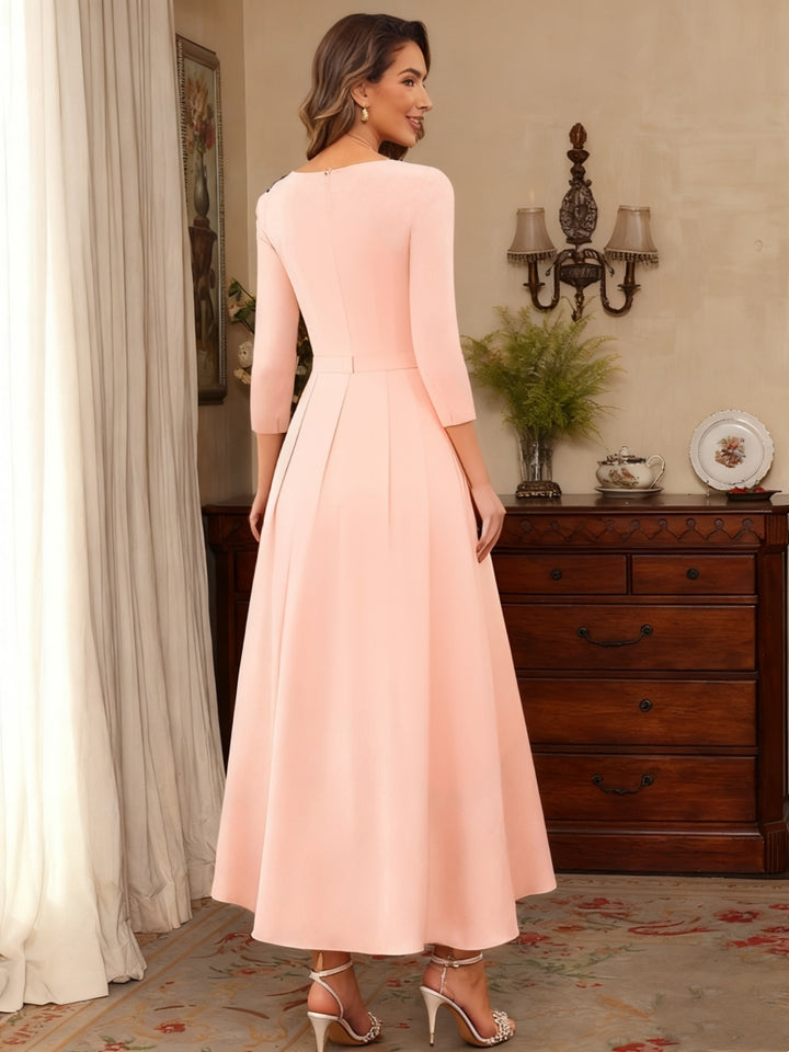 A-Line/Princess Boat Neck 3/4 Sleeves Mother of the Bride & Groom Dresses with Flower & Belt