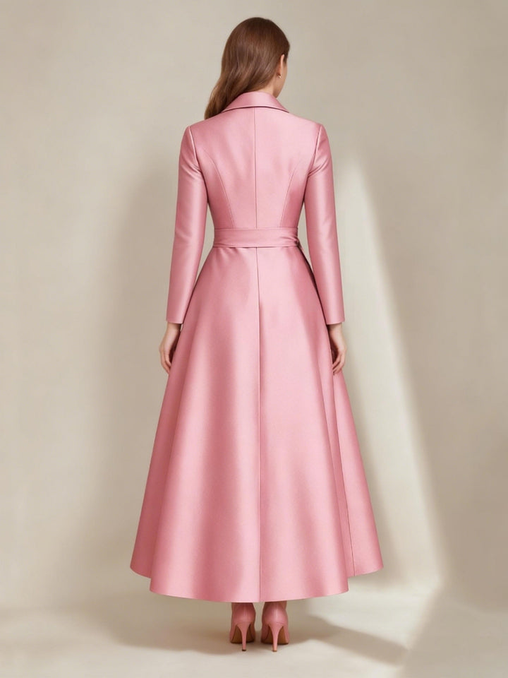 A-Line/Princess V-Neck Mother of Bride Dresss Blazer Long Sleeves Tea-Length Belt Satin
