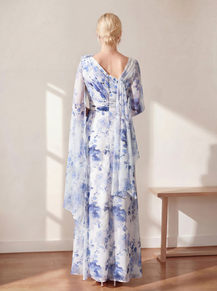A Line/Princess V Neck 3/4 Sleeves Ankle Length Floral Mother of the Bride Dresses