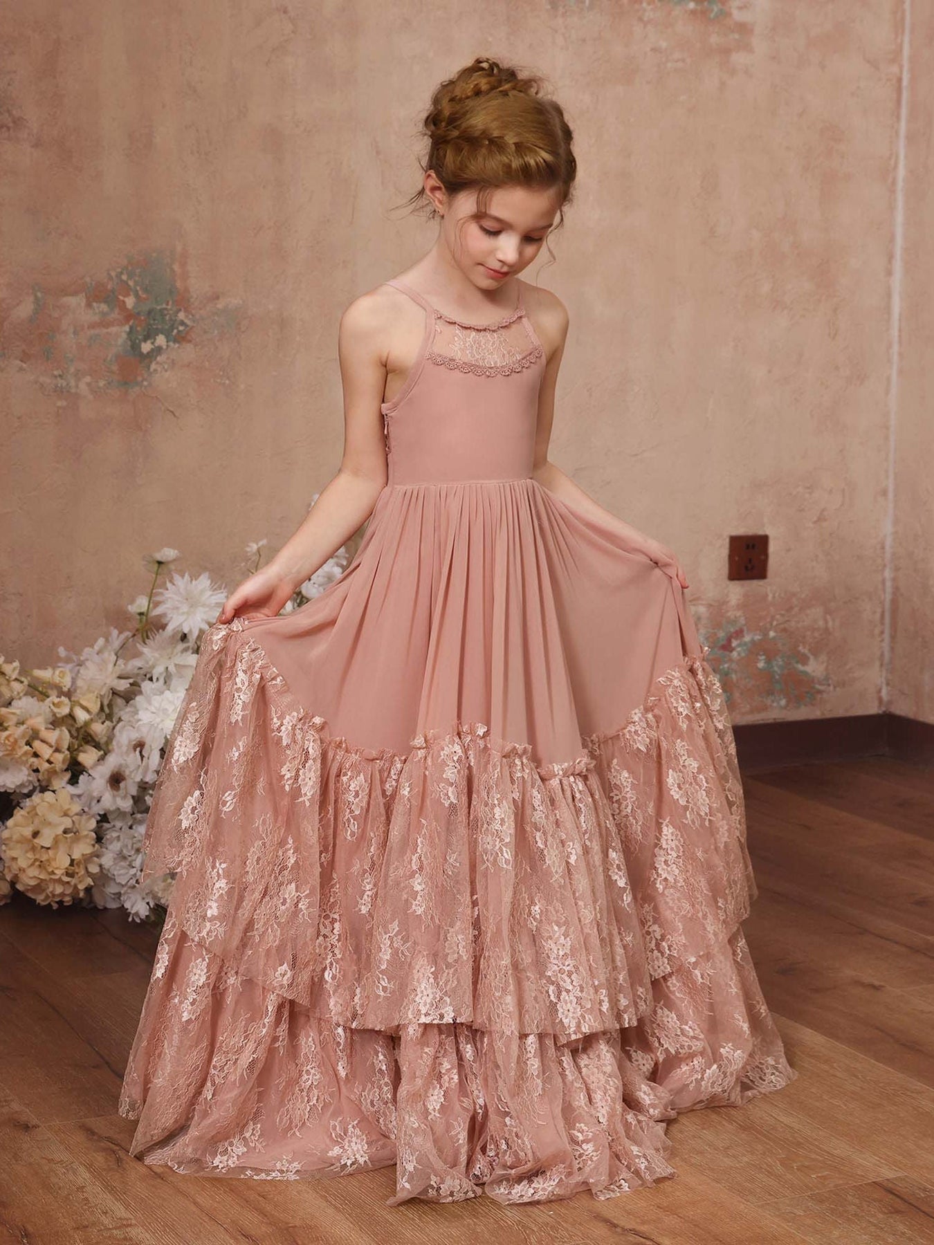 MON11112444 MONDRESSY A-Line/Princess Lace Chiffon Sleeveless Scoop Neck Floor-Length Flower Girl Dresses