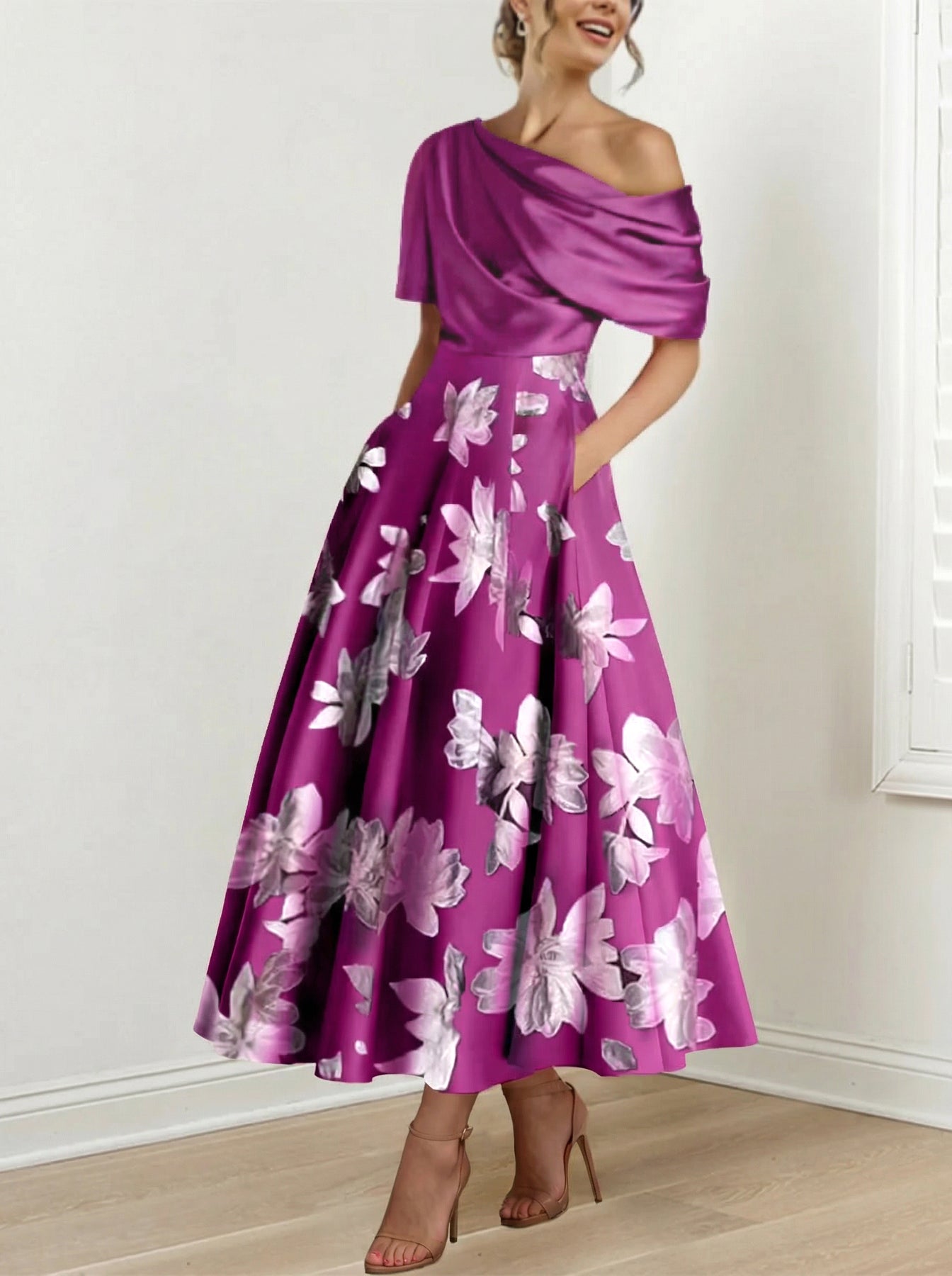 MON2311870 MONDRESSY A-Line/Princess One-shoulder Printed Flower Mother of the Bride Dresses