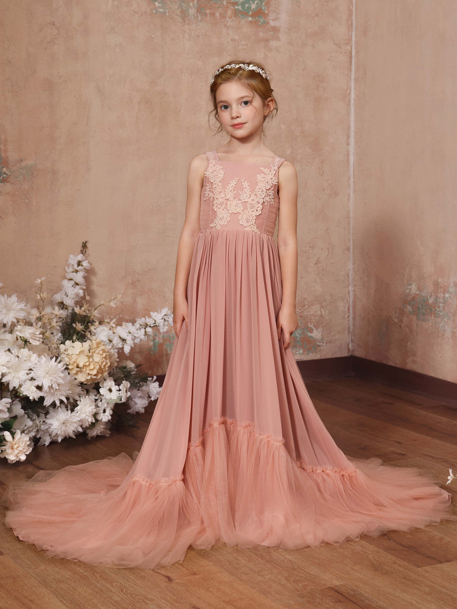 A-Line/Princess Chiffon Sleeveless Square Neck Floor-Length Flower Girl Dresses