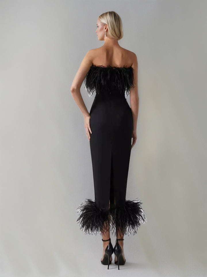 Sheath/Column Strapless Ankle-Length Evening Dresses with Feathers & Back Split