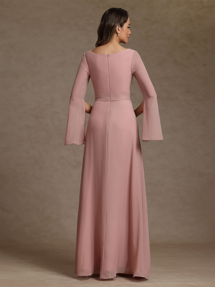 This color harmonizes beautifully with gold, ivory, blush, and even navy shades, facilitating an easy match with the wedding color scheme without detracting from the bride. Whether you select a flowing chiffon gown, a champagne mother of the bride dress featuring sleeves, or a tailored satin silhouette, this color guarantees a look that is luminous yet subtle.