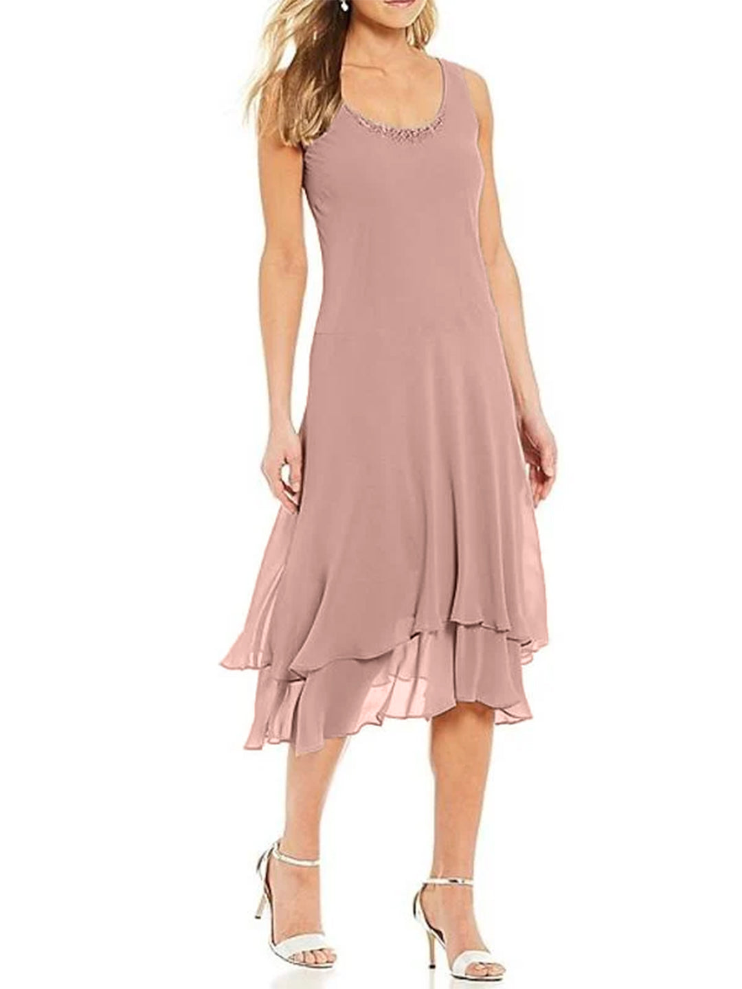 MON2311856 MONDRESSY A-Line/Princess Round Neck Sleeveless Tea-Length Mother Of The Bride Dresses With Jacket