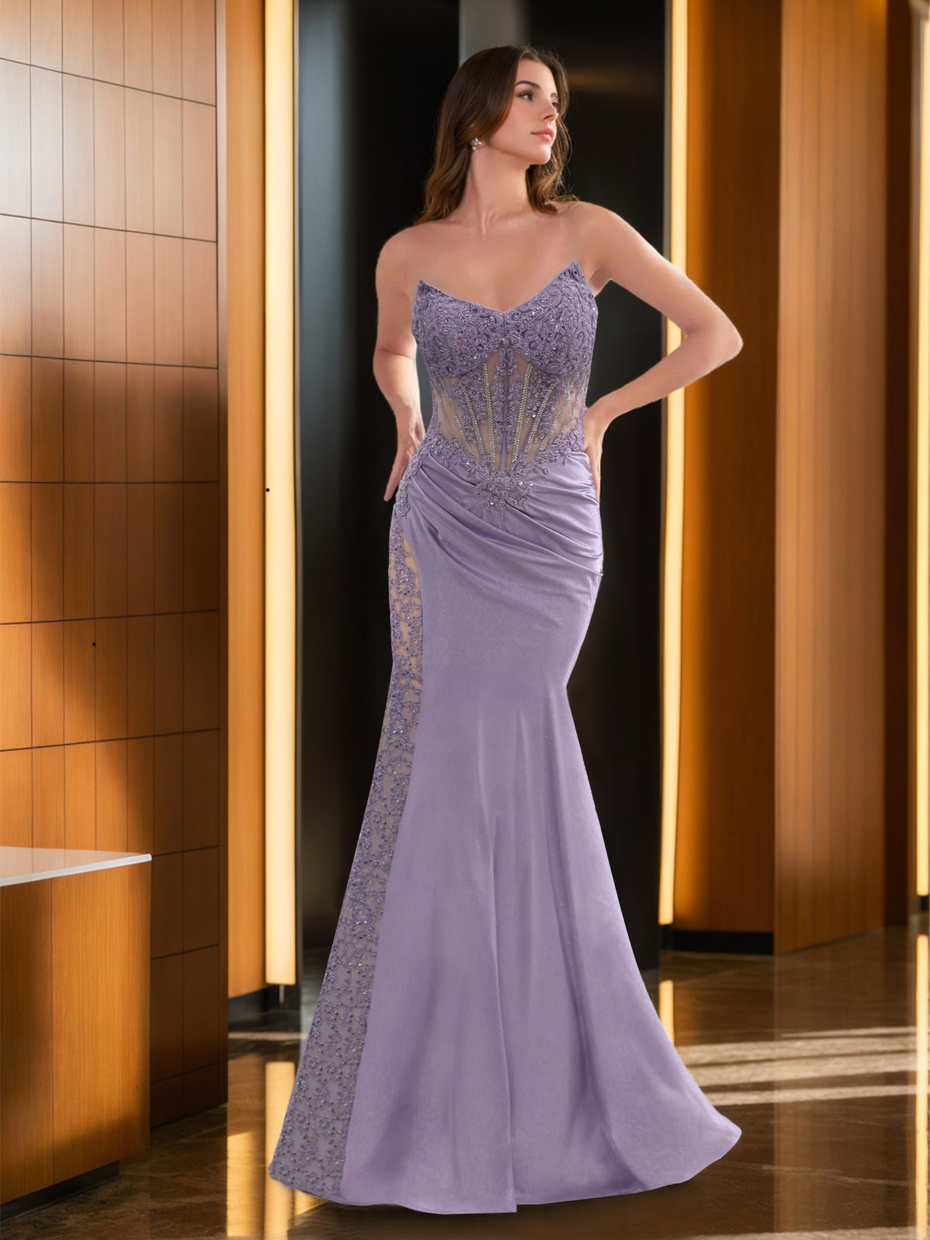 Trumpet/Mermaid V-Neck Sleeveless Floor-Length Evening Dresses with Lace Applique & Sequin