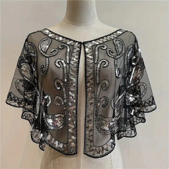 Women's Wrap Cape Vintage Sleeveless Sequind Solid Color Wraps with Beadings