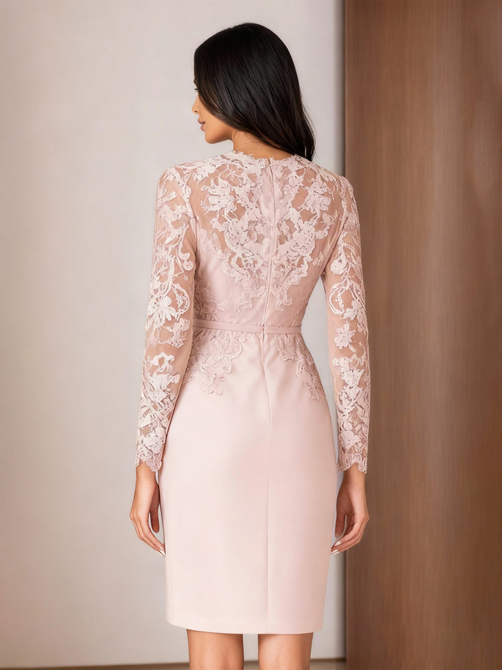 Sheath/Column Long Sleeves V-Neck Knee-Length Mother of the Bride Dresses with Lace