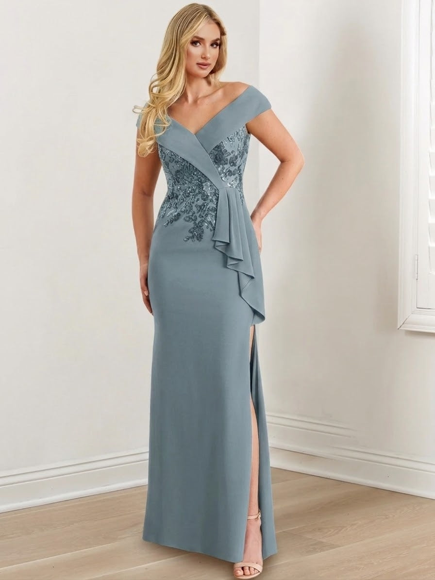 MON2311328 MONDRESSY Sheath/Column V-Neck Floor-Length Mother of the Bride Dresses