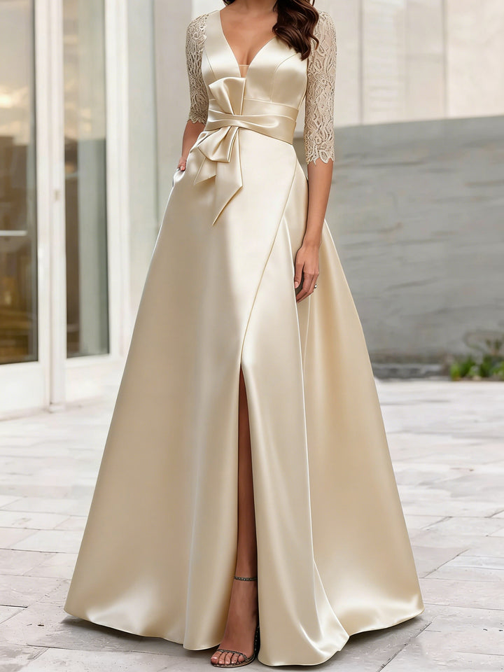 A-Line/Princess V-Neck Half Sleeves Mother Of The Bride Dresses With Split Side