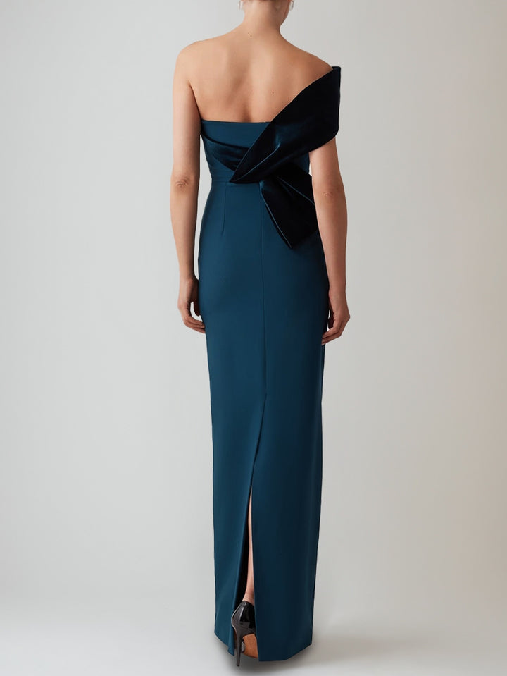 Sheath/Column Floor-Length Off-the-Shoulder Evening Dresses with Velvet Bow Party Dresses
