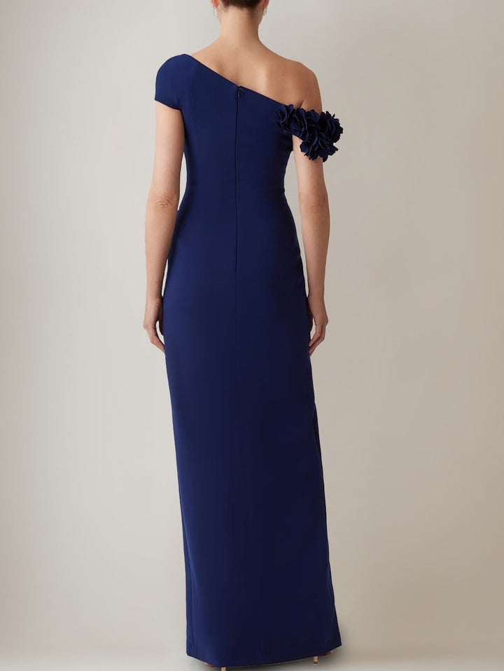 Sheath/Column Off-the-Shoulder Floor-Length Evening Dresses with 3D Flower Party Dresses with Split Side