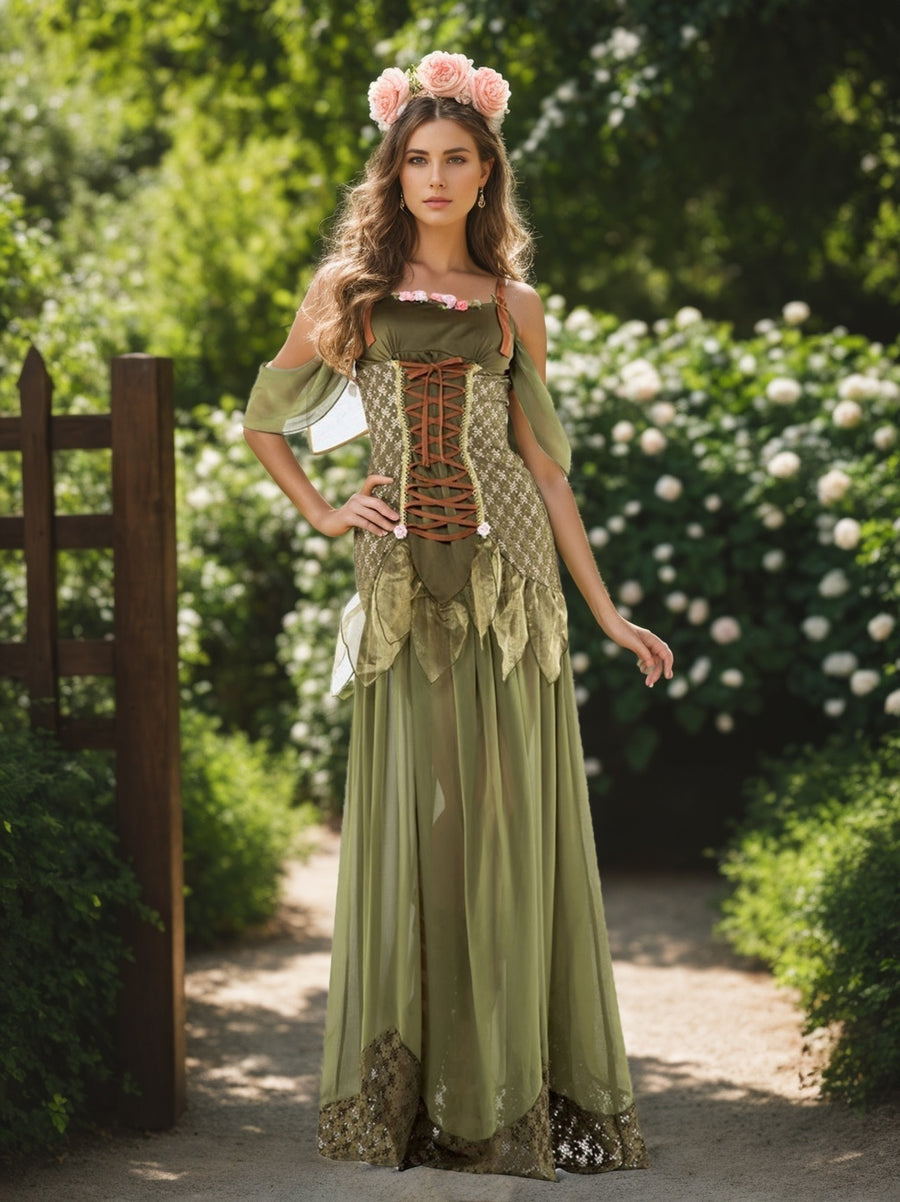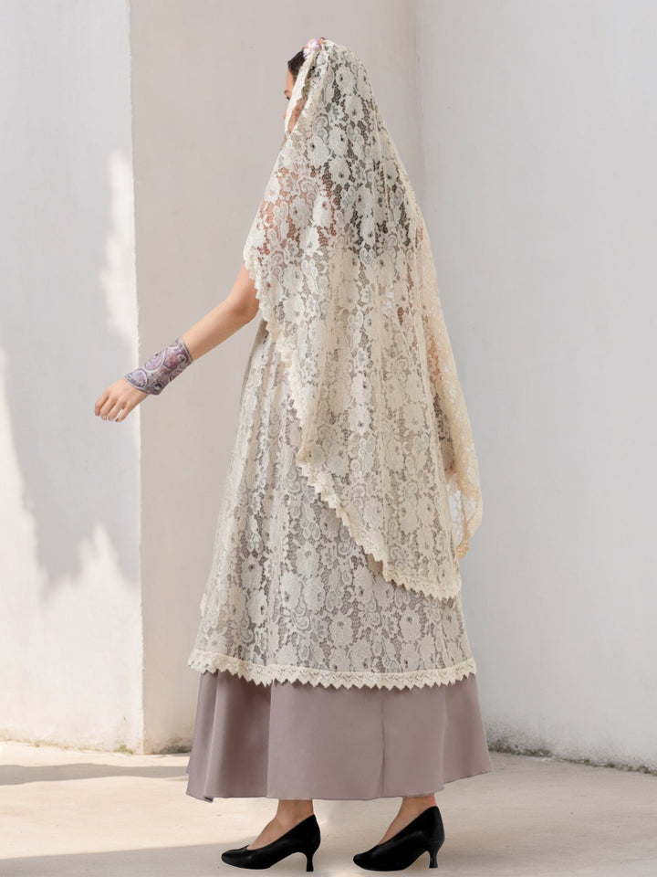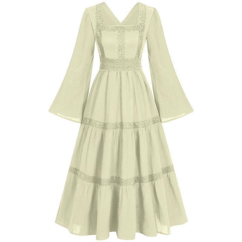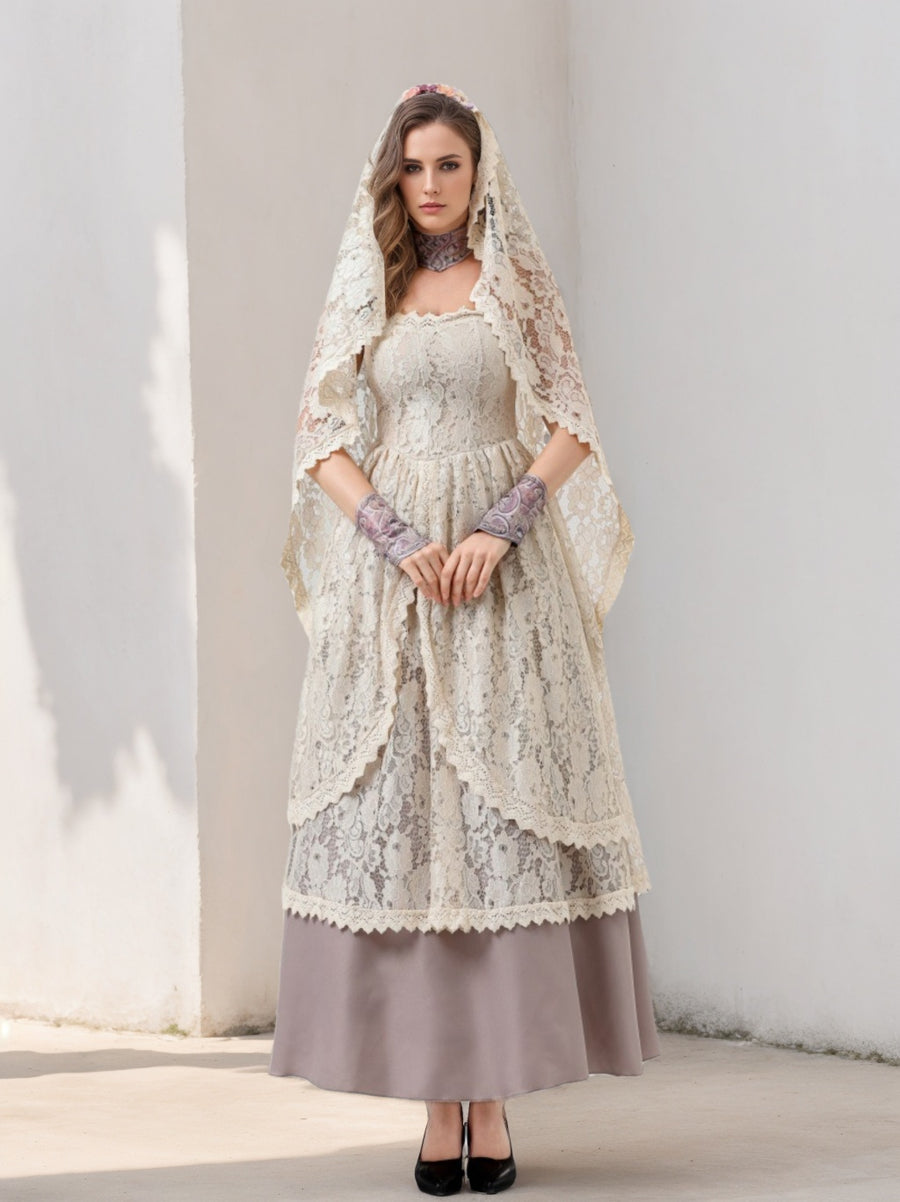 A-Line/Princess Square Collar Lace Prom Dresses Floor-Length Floral Formal Dresses