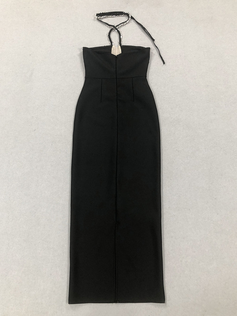 MON8040133W MONDRESSY Trumpet/Mermaid Halter Sleeveless Rhinestone Long Elegant Evening Dresses with Cut-out
