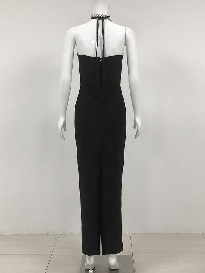 Trumpet/Mermaid Halter Sleeveless Rhinestone Long Elegant Evening Dresses with Cut-out