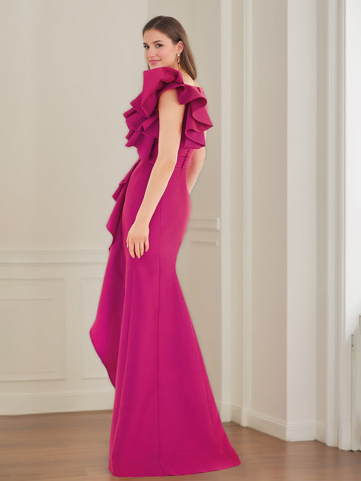 White Mermaid/Trumpet Sleeveless Floor Length Wedding Guest Dress With Ruffles