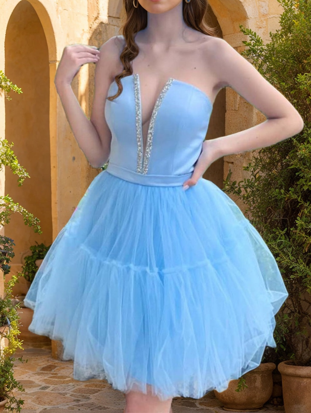 MON342725 MONDRESSY A-Line/Princess Strapless Sleeveless Short/Mini Homecoming Dresses with Lace-up & Rhinestones