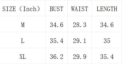 | SIZE(INCH) | BUST | WAIST | LENGTH |