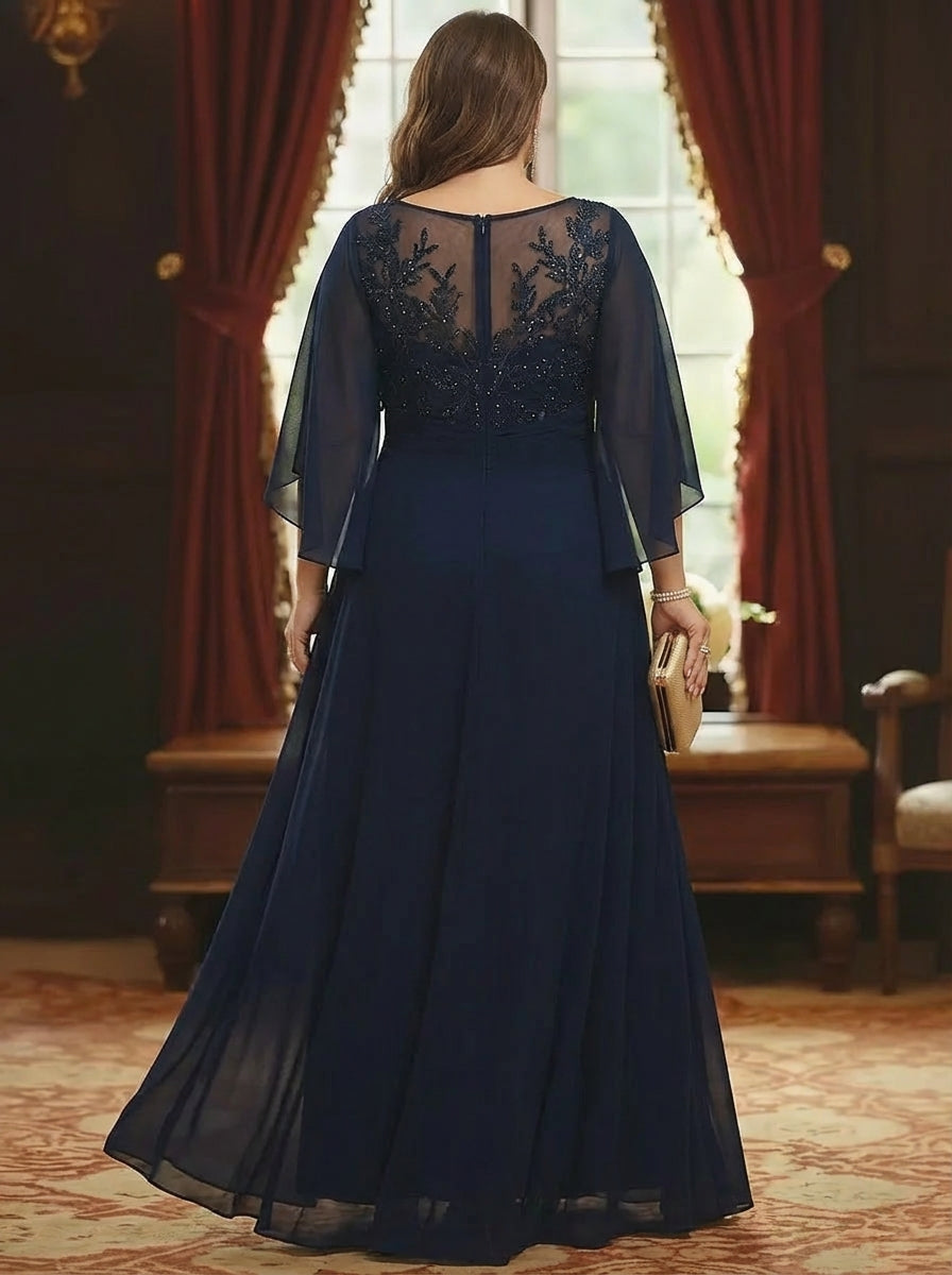MON2312757P MONDRESSY A-Line/Princess Scoop Chiffon Plus Size Mother of the Bride Dresses Lace Half Sleeves Floor-Length