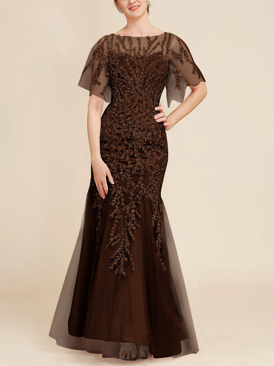 Trumpet/Mermaid Scoop Half Sleeves Floor-Length Mother of the Bride Dresses with Lace