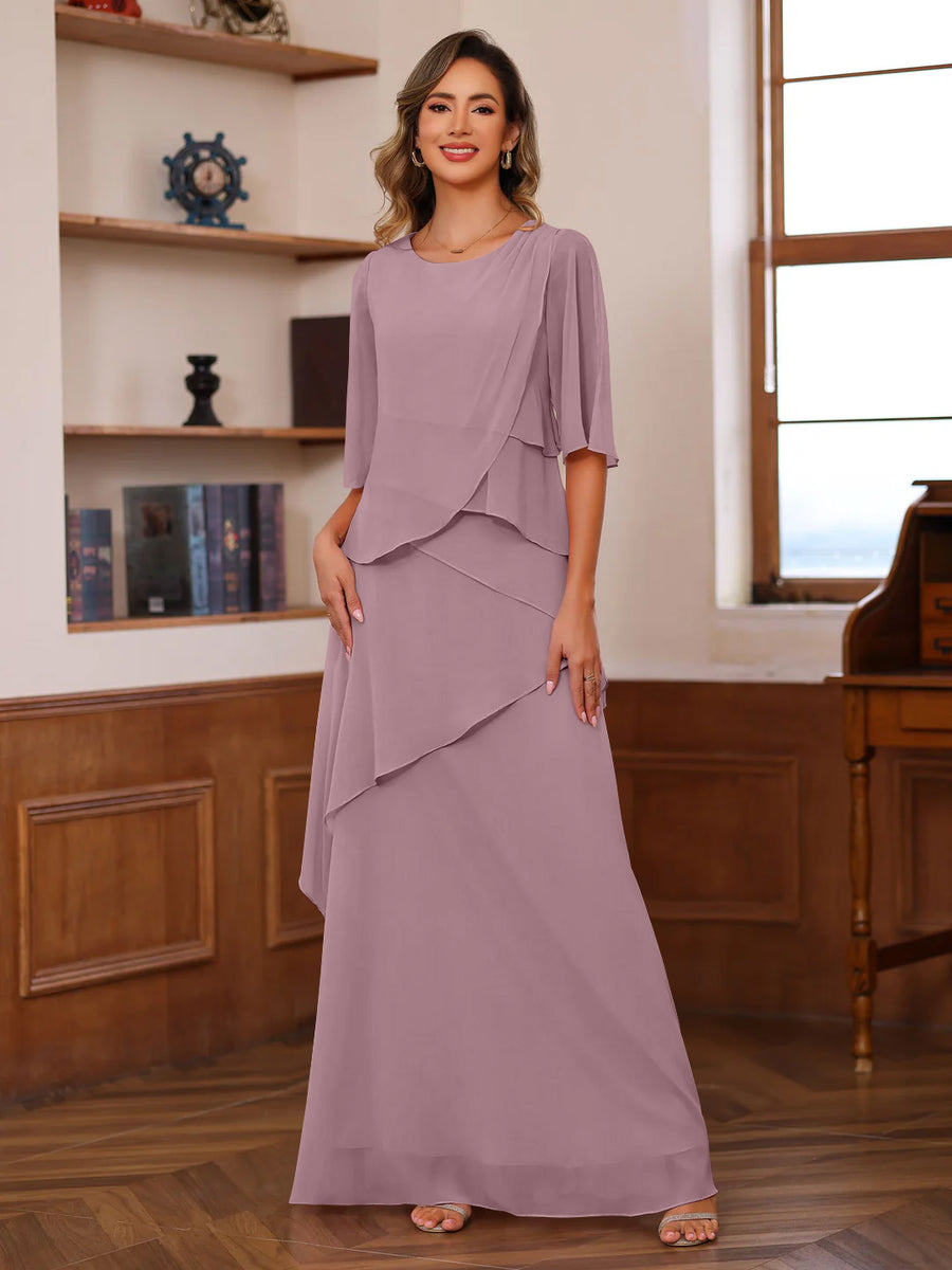 A-Line/Princess Scoop Neck Half Sleeves Floor-Length Mother of the Bride Dresses with Ruffles