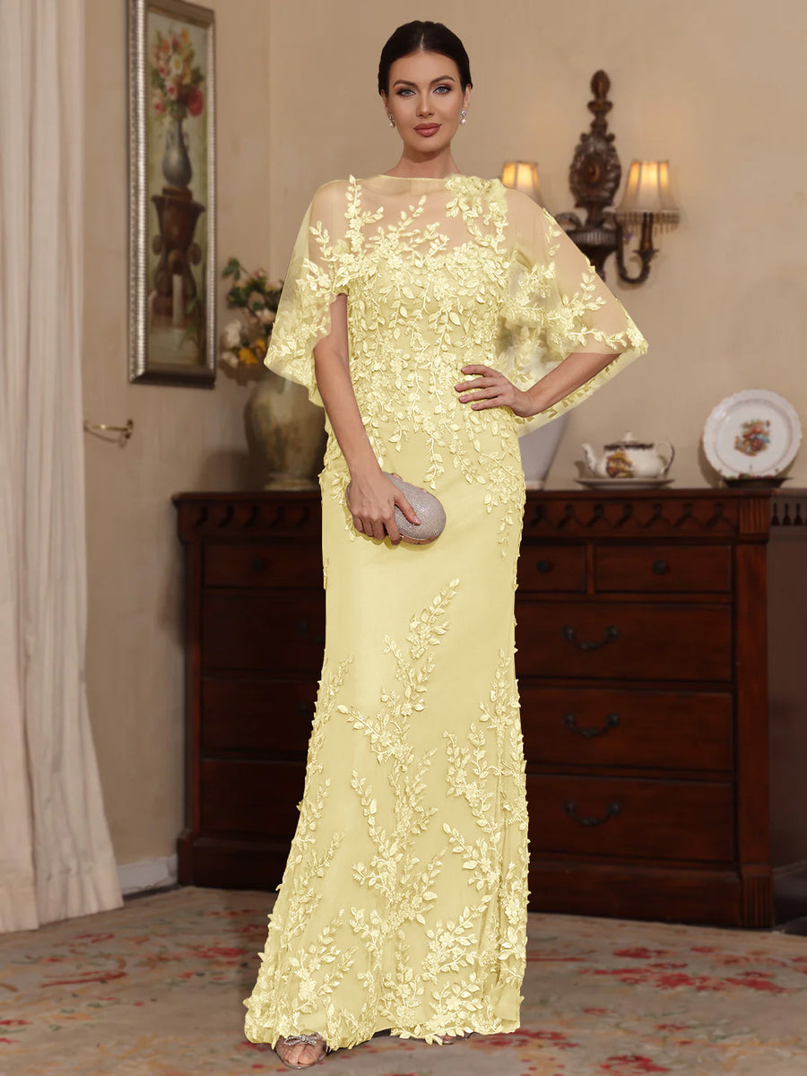 2 Pieces Sheath/Column Scoop Lace Mother of the Bride Dresses with Wrap Beading Half Sleeves Floor-Length