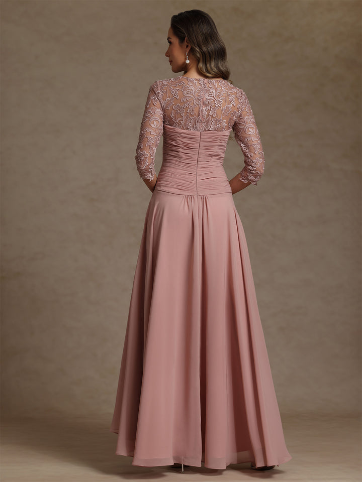 A-Line/Princess V-Neck Chiffon Mother of the Bride Dresses Lace Ankle-Length 3/4 Sleeves