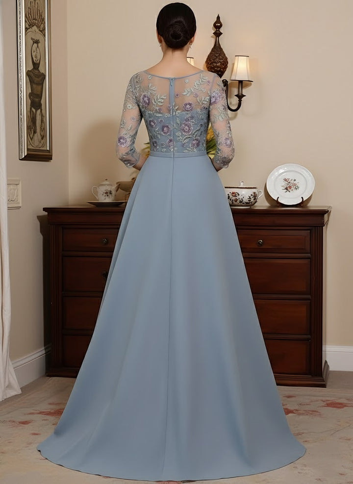 A-Line/Princess Scoop Satin Mother of the Bride Dresses Lace Floral Floor-Length 3/4 Sleeves
