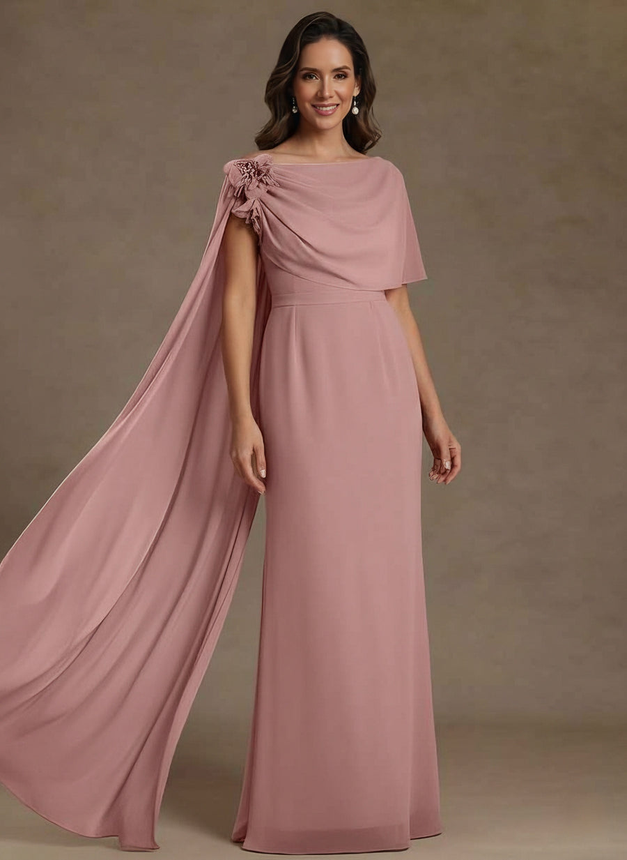 Sheath/Column Cowl Neck Chiffon Mother of the Bride Dresses with Watteau Train Floor-Length Flower Sleeveless