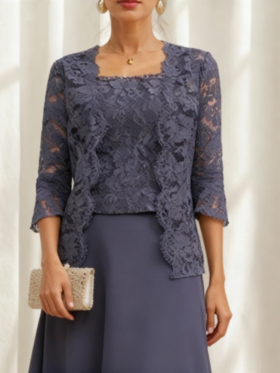 A-Line/Princess Chiffon Scoop Half Sleeves Mother of the Bride Dresses Lace Ankle-Length