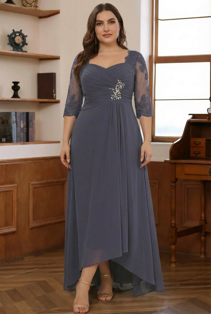 MON2312559P MONDRESSY A-Line/Princess 2 Pieces Chiffon Plus Size Mother of the Bride Dresses with Jacket Sweetheart Ankle-Length Long Sleeves