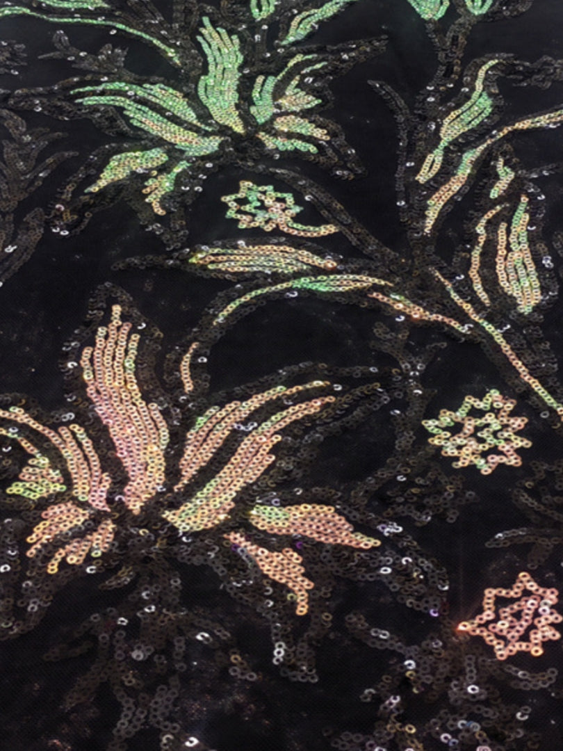 A-Line/Princess Off-the-Shoulder Stretch Satin Cocktail Dresses Sleeveless Sequins Floral Tea-Length Formal  Dresses