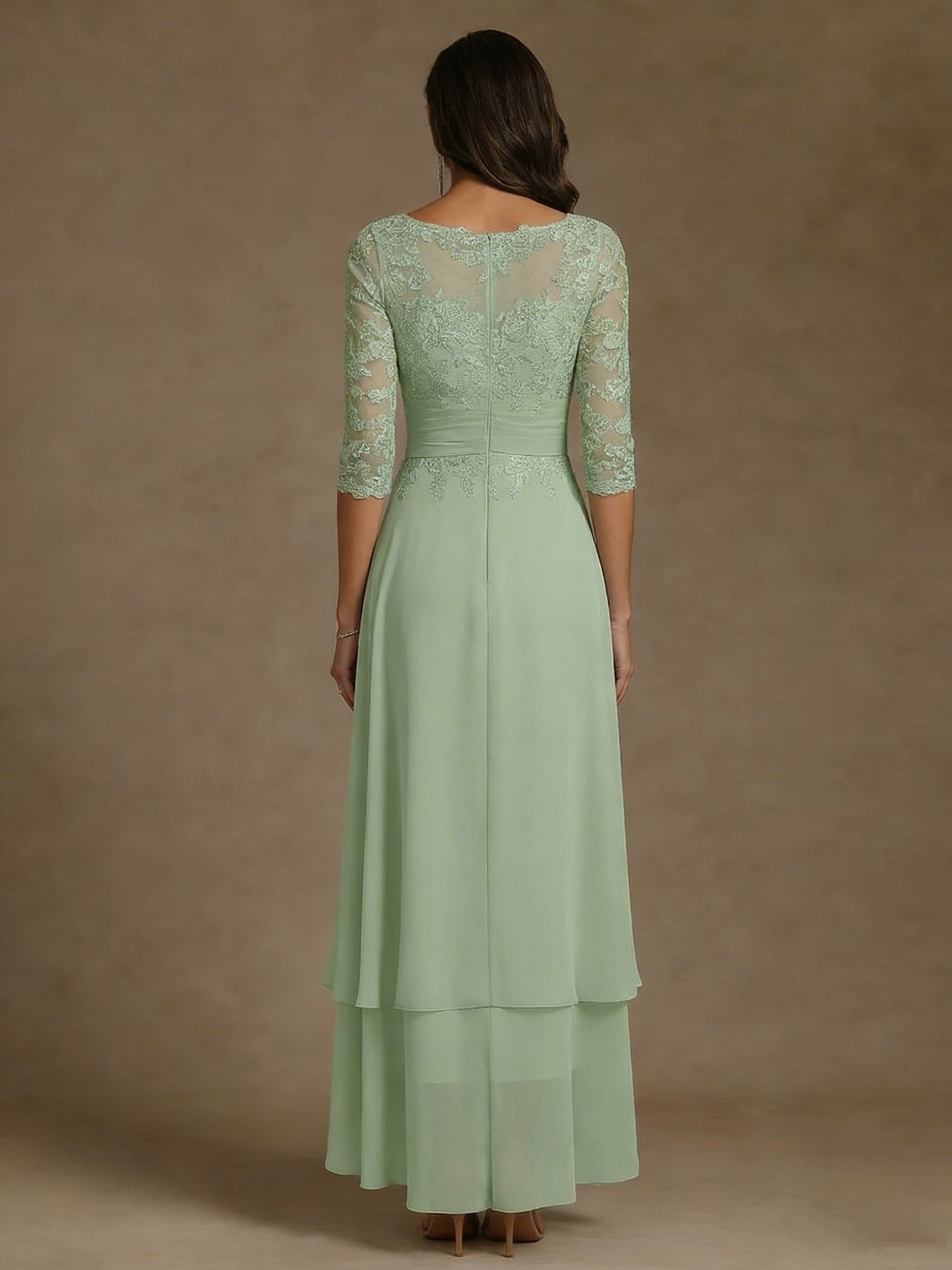 MON2312785 MONDRESSY A-Line/Princess Scoop Chiffon Mother of the Bride Dresses Lace Ankle-Length 3/4 Sleeves Pleated