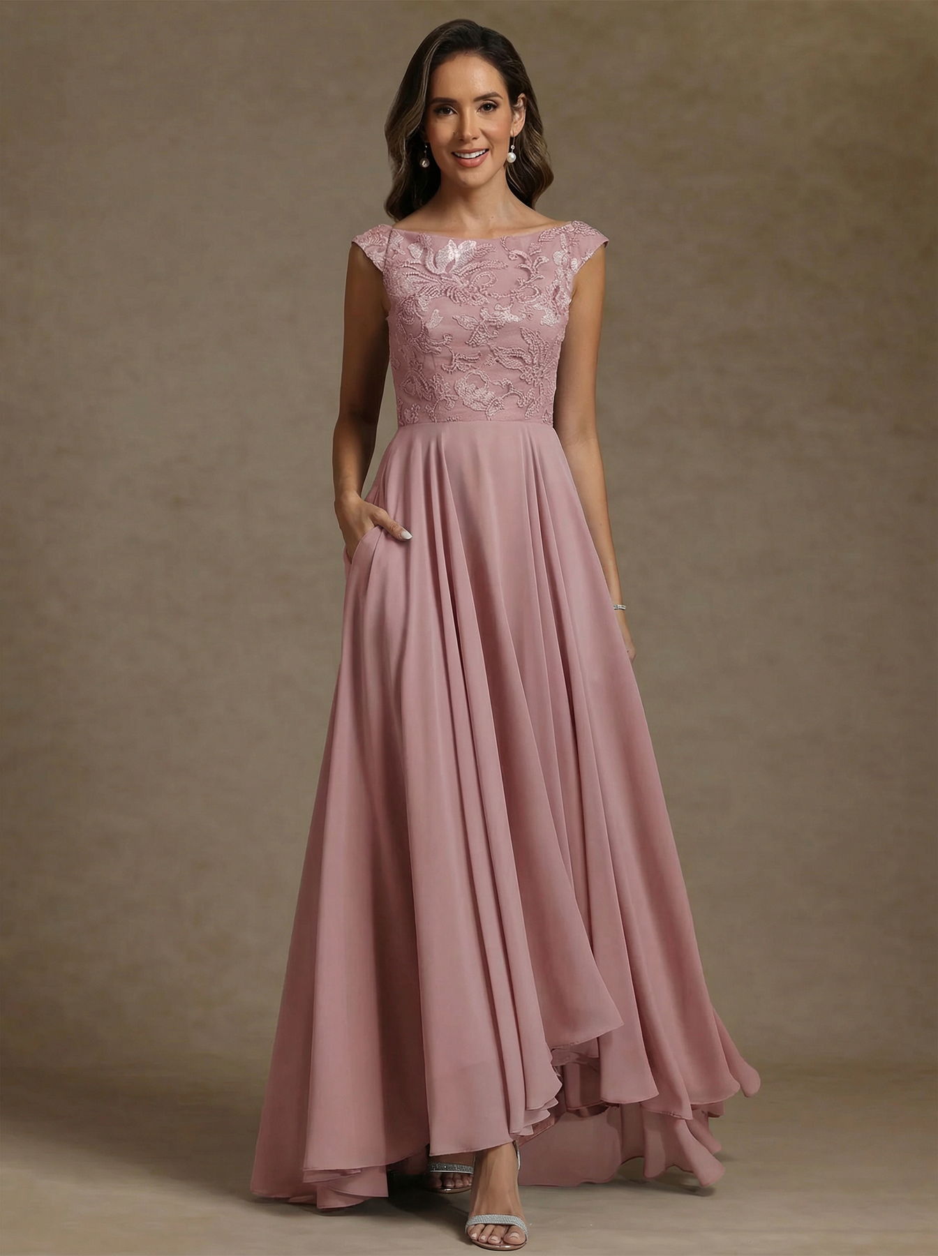 MON2312684 MONDRESSY A-Line/Princess Scoop Chiffon Mother of the Bride Dresses Lace Sequins Floor-Length Sleeveless Pleated