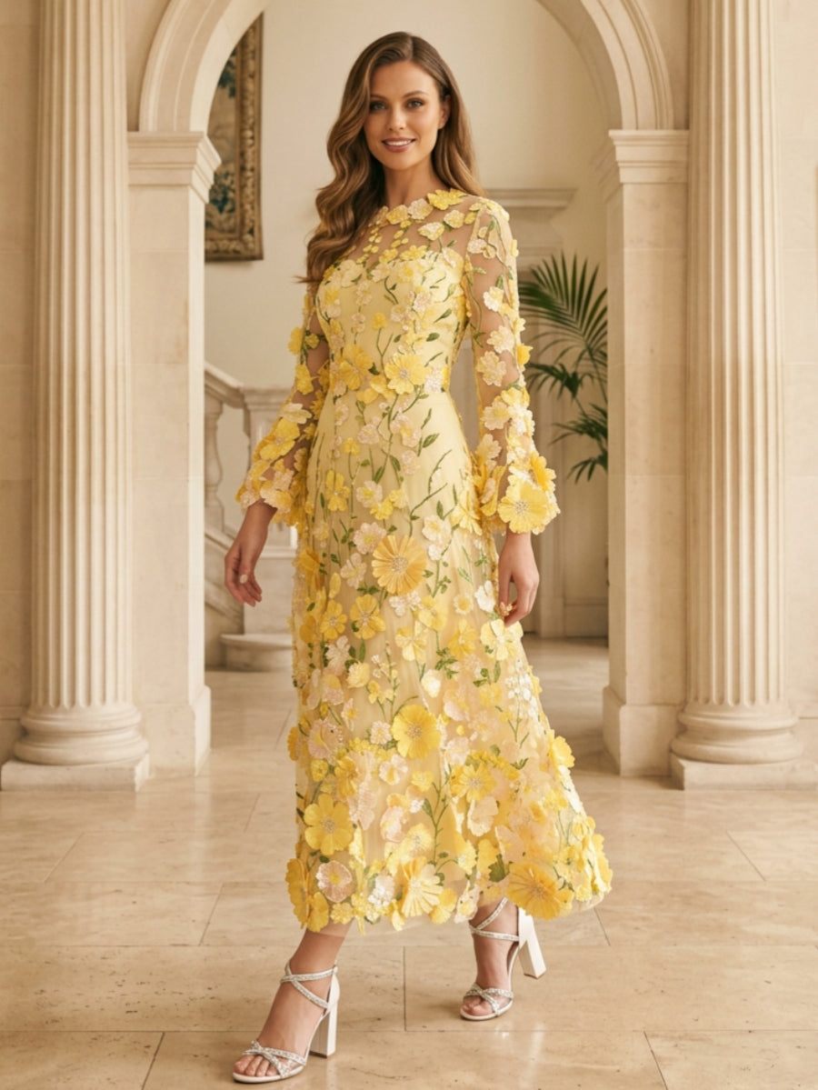 MON2312851 MONDRESSY A-Line/Princess Scoop Lace Appliques Mother of the Bride Dresses Floral Long Sleeves Tea-Length