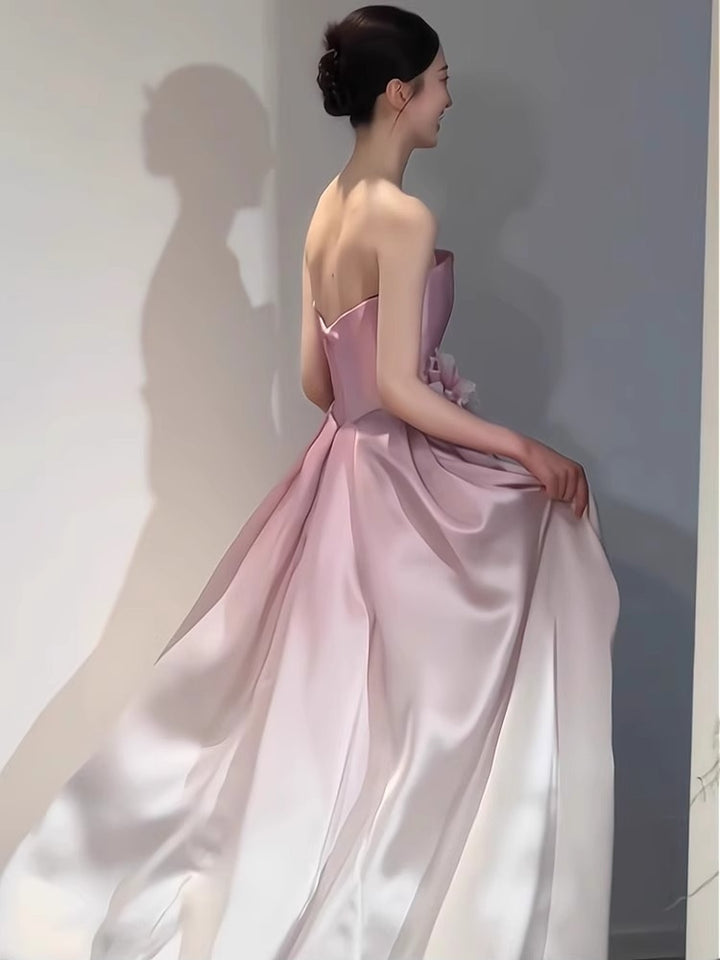 MON8040104W MONDRESSY A-Line/Princess Strapless Sleeveless Floor-Length Pleated Evening Dresses with 3D Flowers
