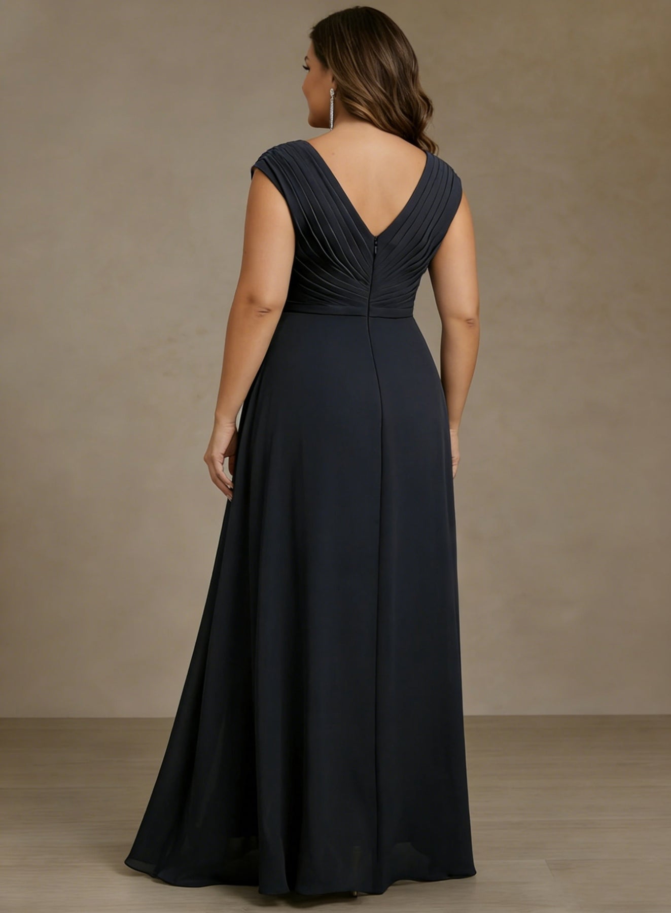 MON2312740P MONDRESSY A-Line/Princess V-Neck Chiffon Plus Size Mother of the Bride Dresses Asymmetrical Floor-Length Sequins Ruched