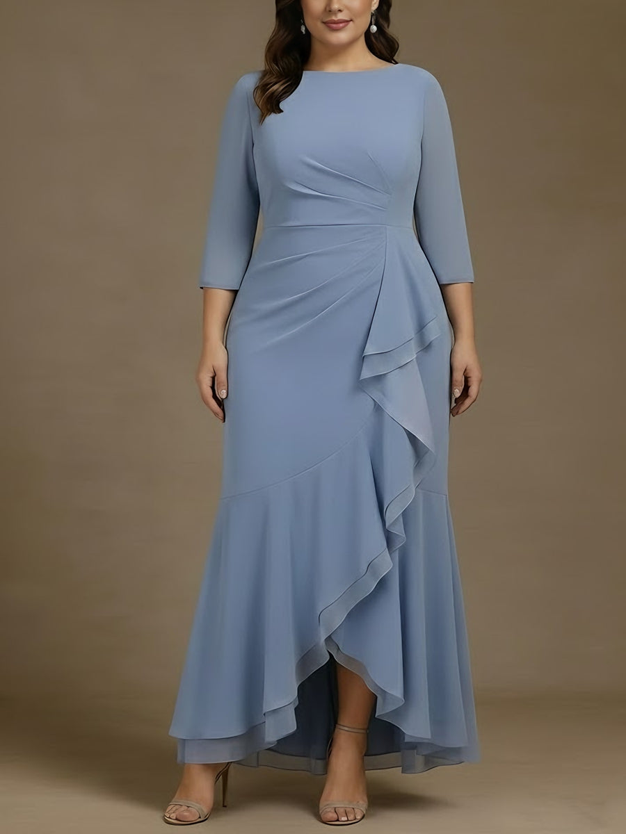 MON2312743P MONDRESSY Trumpet/Mermaid Scoop Chiffon Plus Size Mother of the Bride Dresses Asymmetrical Ankle-Length High Low 3/4 Sleeves Ruffles