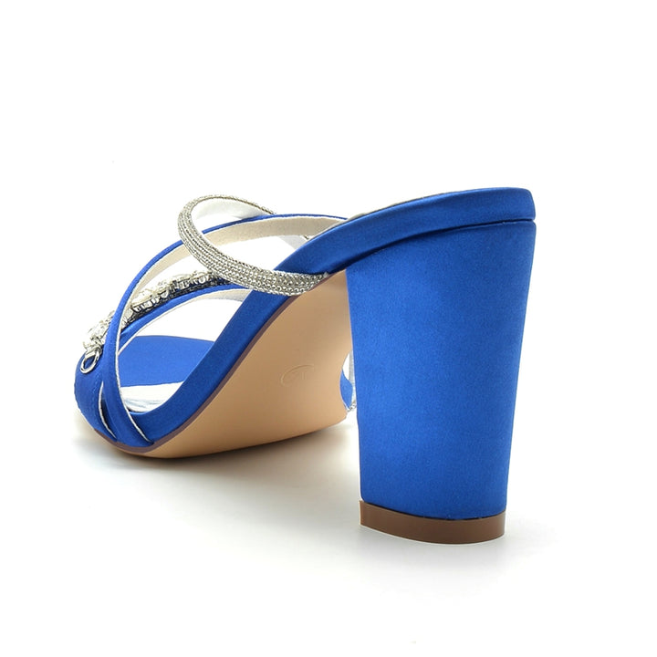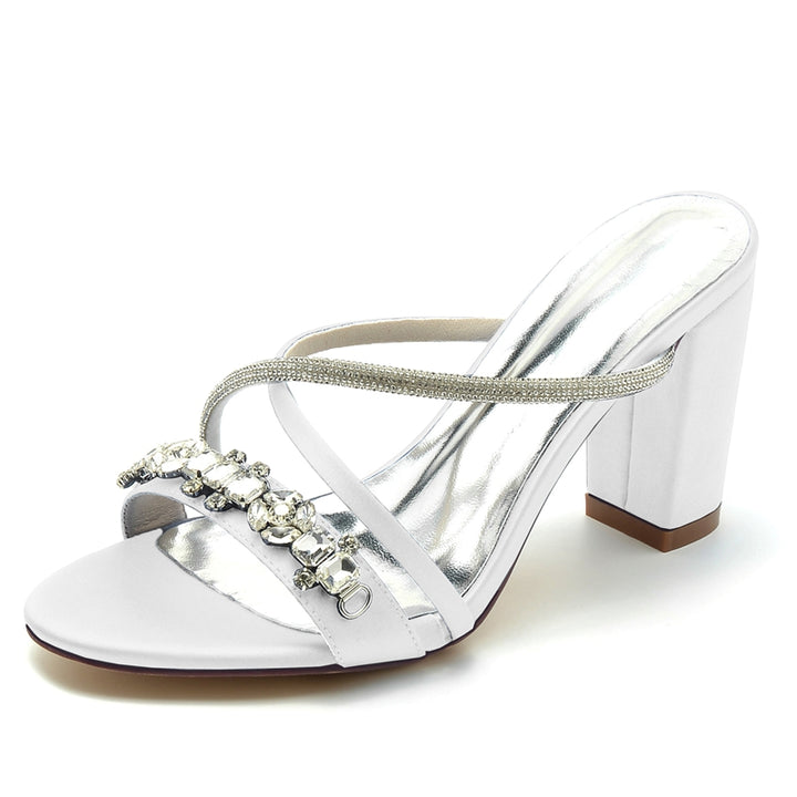 Women's Wedding Shoes Opened Toe Crossed Straps Slip-On Sparkling Bridal Shoes with Rhinestone