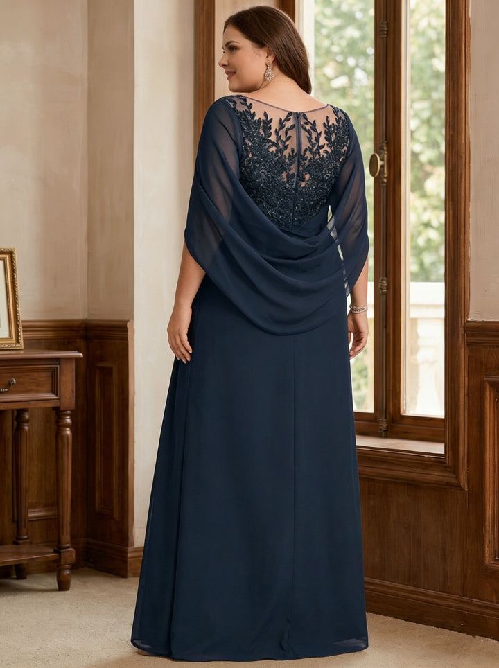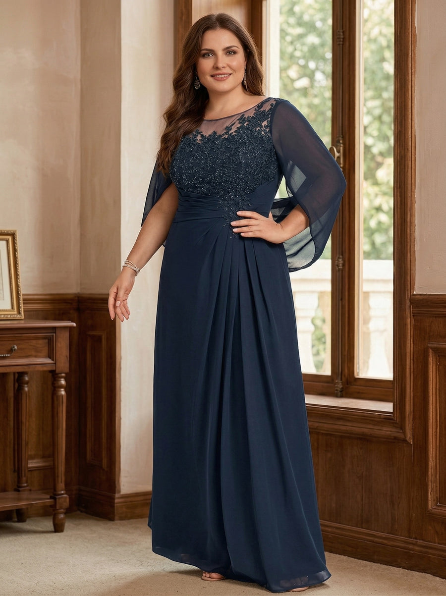 A-Line/Princess Scoop Floor-Length Plus Size Mother of the Bride Dresses with Pleated & Sequins