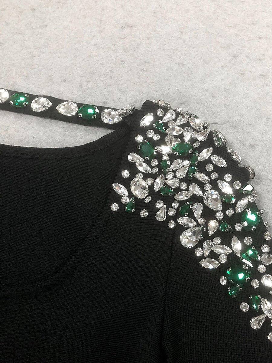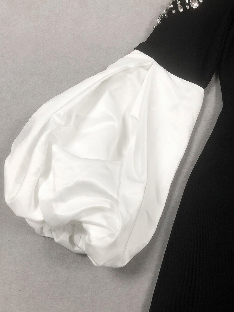 MON8040134W MONDRESSY Sheath/Column Boat Neck Long Sleeves Elegant Evening Dresses with Rhinestones & Ruffles