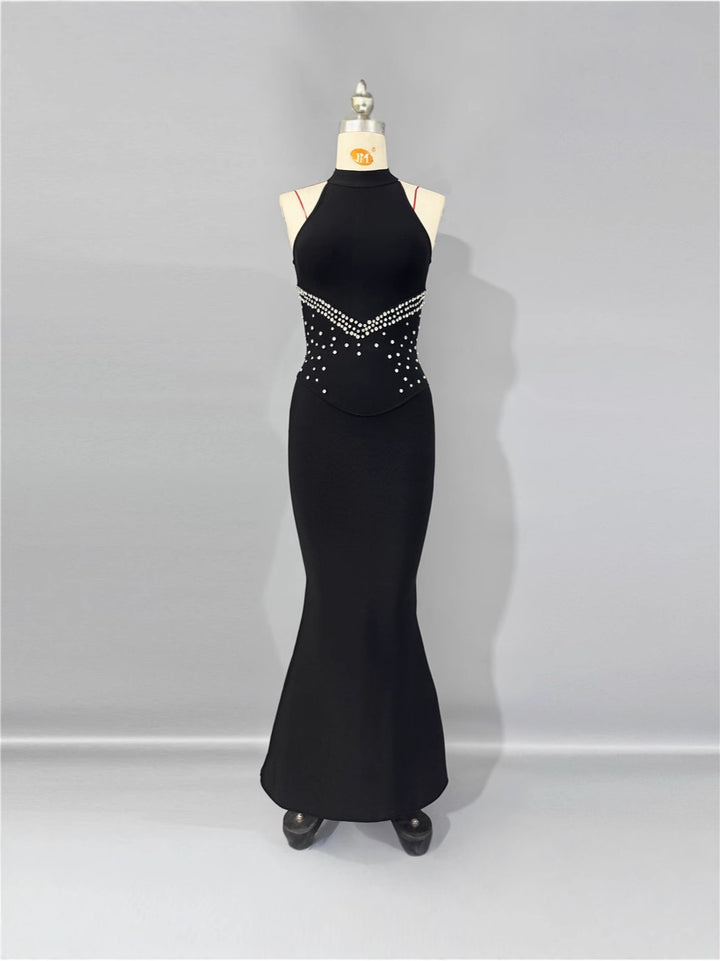 Sheath/Column Halter Floor-Length Evening Dresses Sleeveless Party Dresses Beading Stretch Satin