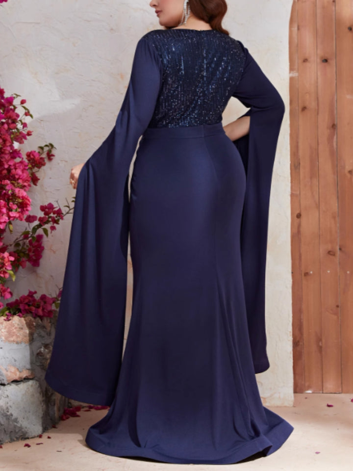 Trumpet/Mermaid V-Neck Long Sleeves Plus Size Mother of the Bride Dresses Sequins Floor-Length