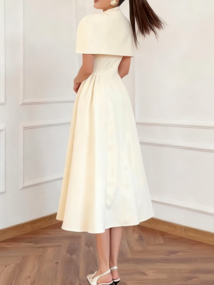 A-Line/Princess Square Collar Cocktail Dresses Tea-Length Cape Sleeves Ruffles